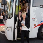On the Friday before, the ladies attended Coldingham Village Hall to attend the premier of the DVD, “Eyemouth’s Crowning Glory”, a movie that features all the past EHQs throughout the years that was made to commemorate the 70th Crowning. All arrived by coach and were received by the committee and a piper. After a champagne reception and food, Colonel Furness presented a footstool that he gifted to the festival in memory of his mother, Flower who crowned the first EHQ back in 1939.